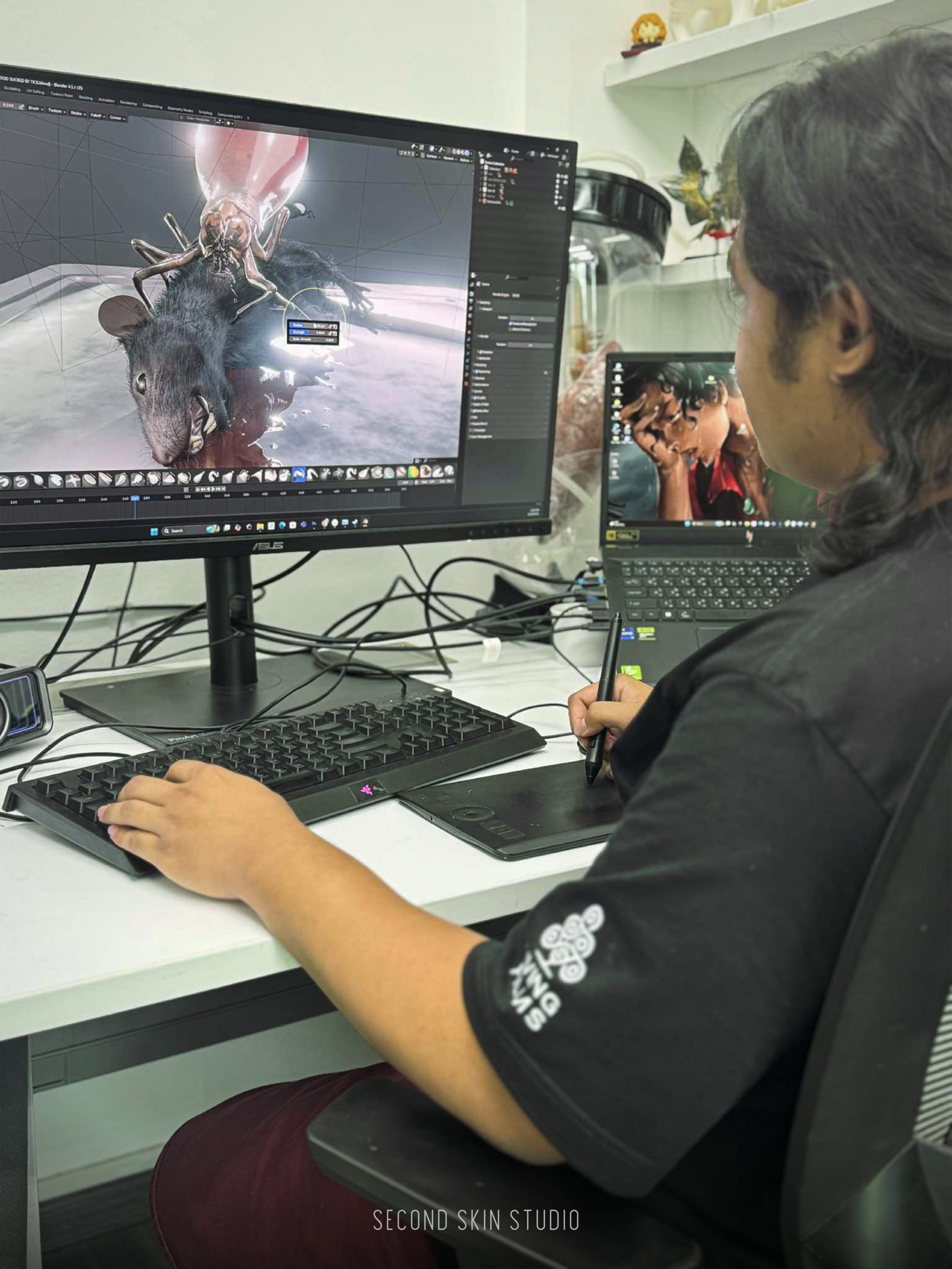 Alien: Earth We fabricated several silicone rats as practical FX props, 3D sculpted by Kuntee Lakpat (Sky). Two versions were made.. a normal, healthy rat and a thinner, blood-drained one. A bladder system was also added to create subtle breathing effects, making them appear alive even when still. Every step, from sculpting to detailing and hair work, was crafted to look as real as possible on camera.