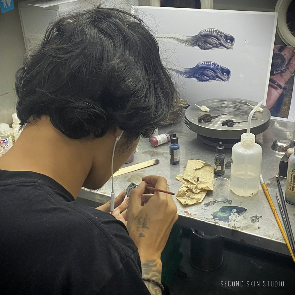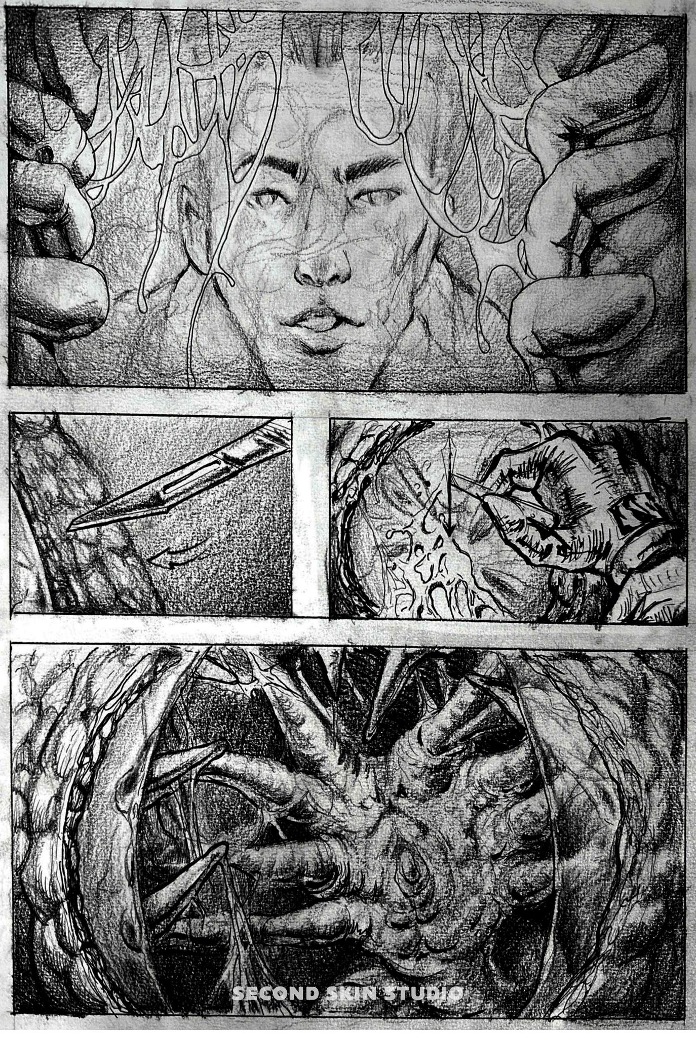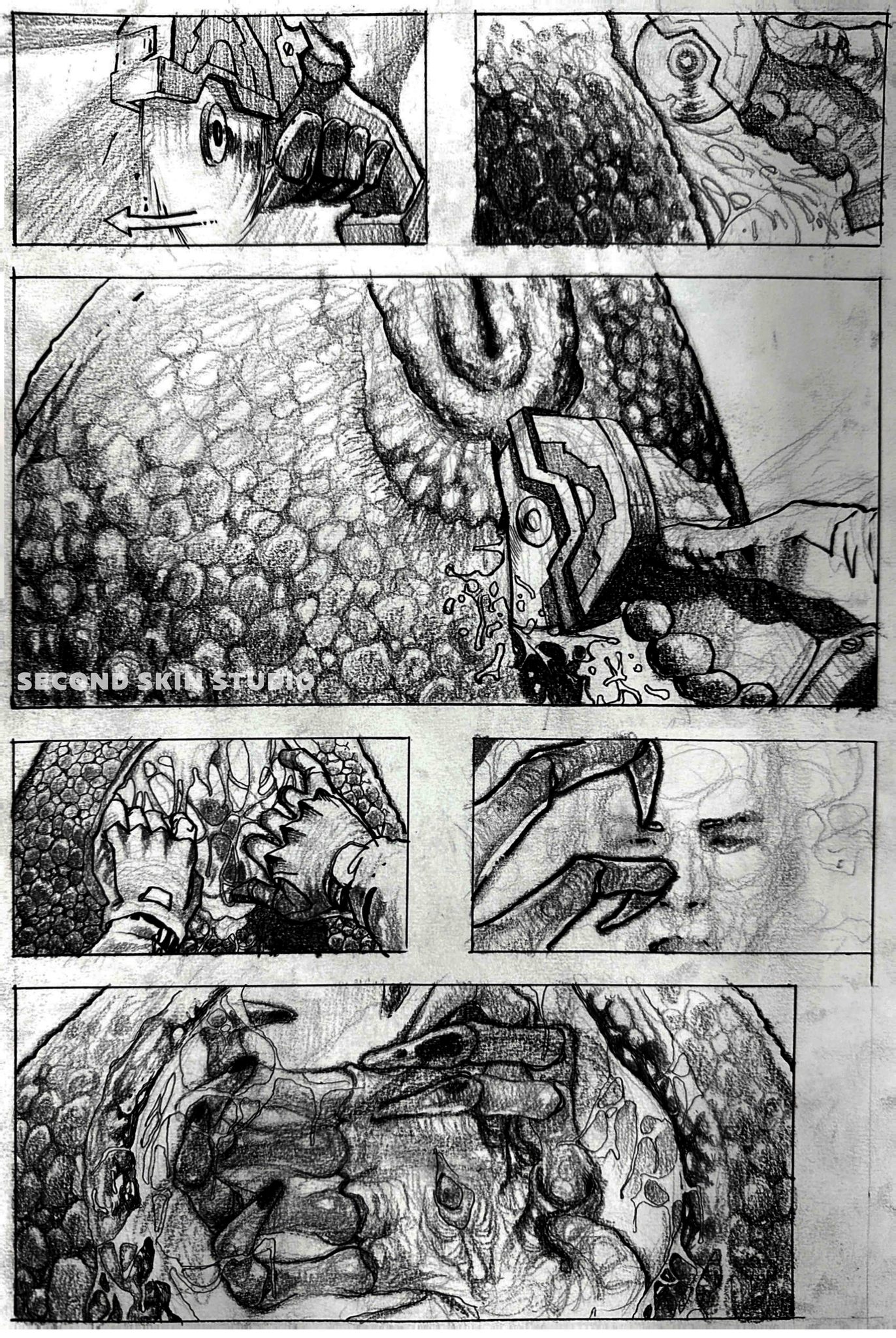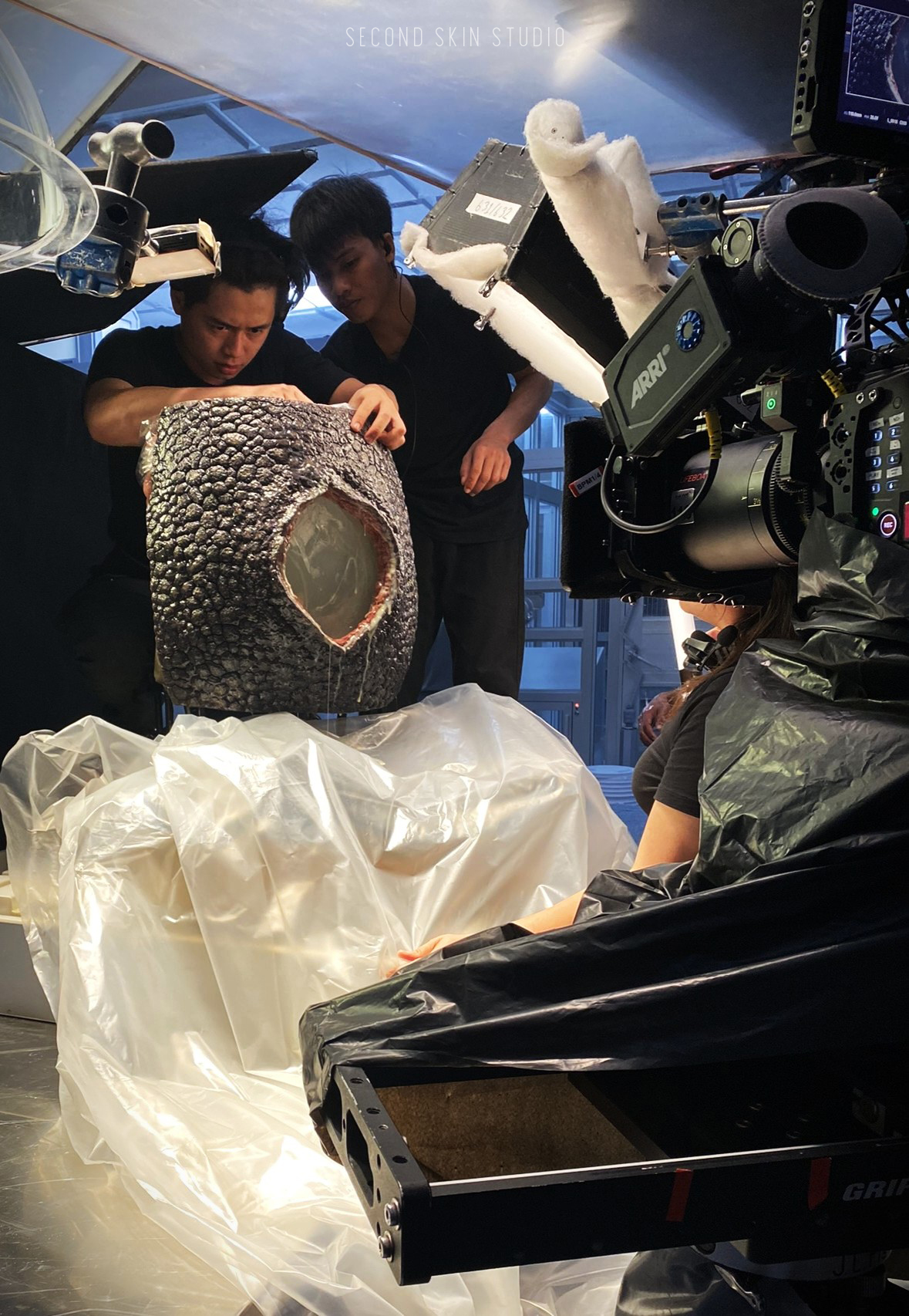 Vorawut Srivilai (Noom), one of the Second Skin team, created the storyboard to carefully break down each cut and shot. This helped our crew plan the preparation of the skin surface, membrane layers, and slime effects to fit the different shots and tell the story in the best way, making the scene look as realistic and impactful as possible on screen.
