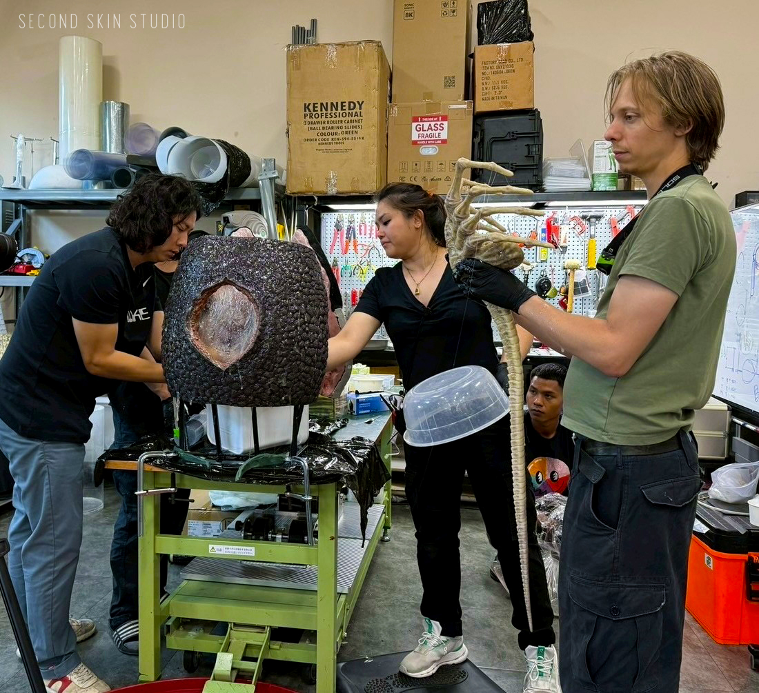 Alien: Earth Some behind-the-scenes photos from the Xenomorph Egg dissection. Big thanks to Nick Acharee for creating the amazing Second Skin Slime and designing the highly elastic membrane layers that made this scene even more realistic And special thanks to Tim and Craig from the Weta team for their valuable advice and for puppeteering the Facehugger at a truly world-class level, incredible puppeteers in action