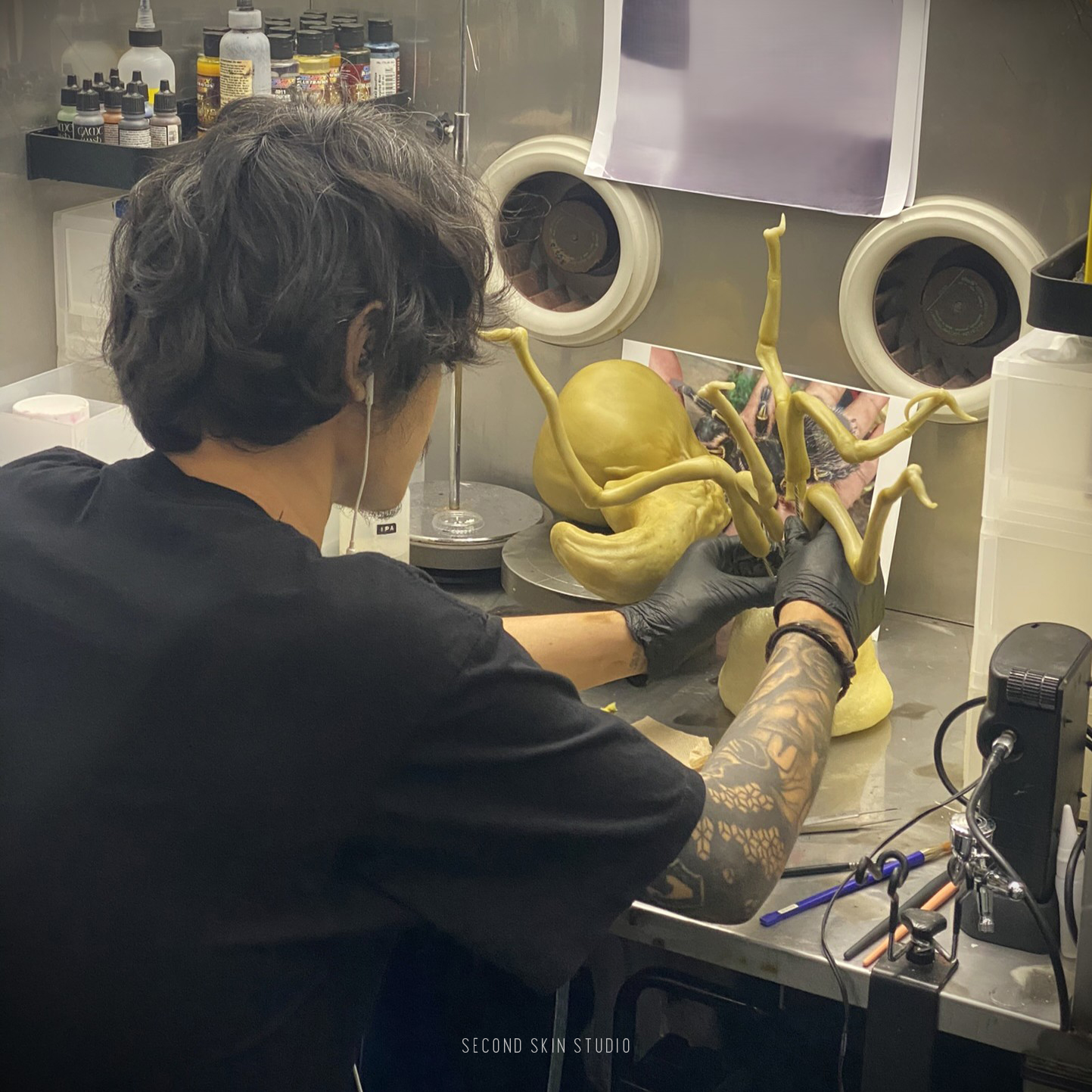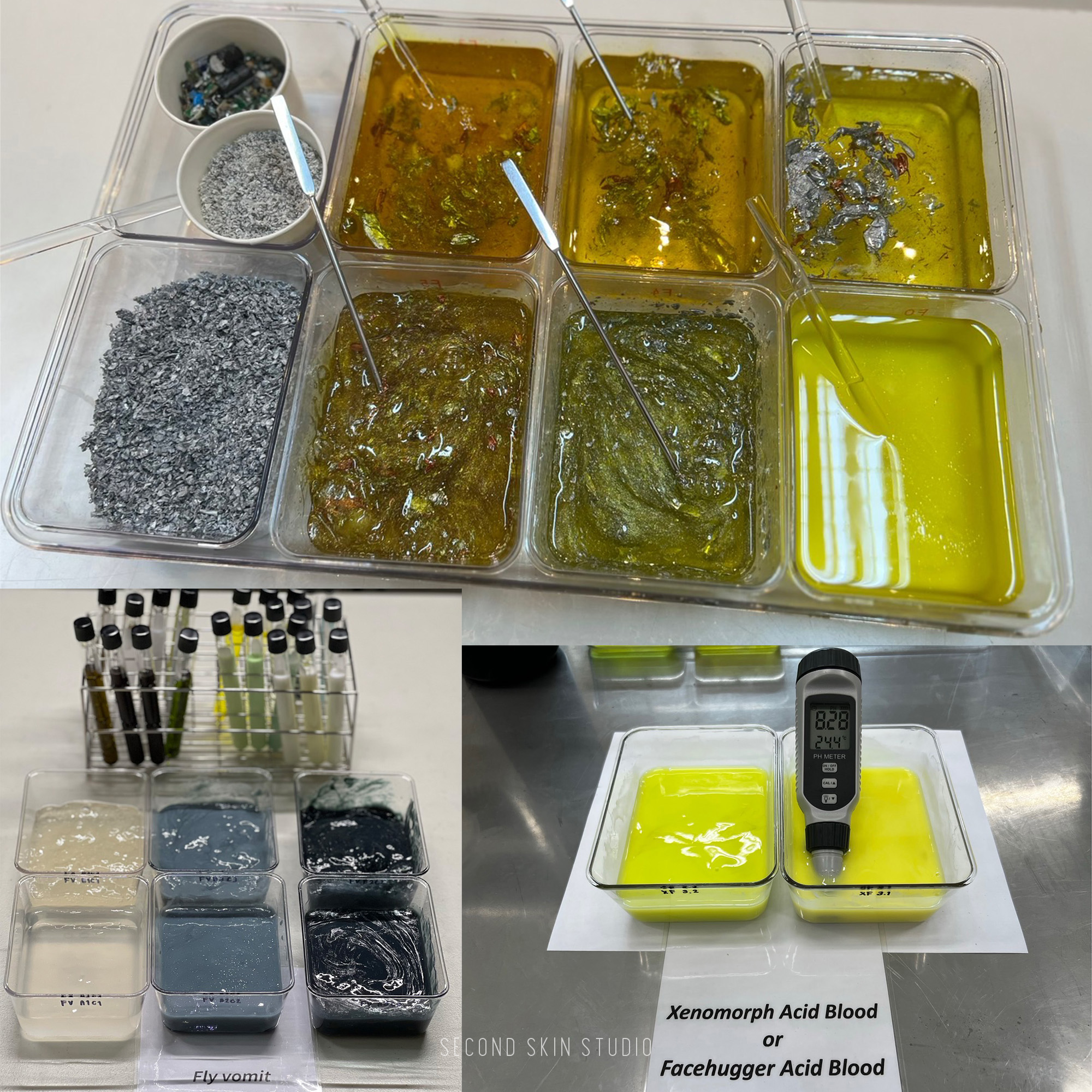 Alien: Earth Fluid In the series, we created many kinds of special liquids: slime for the eggs, xeno slime, facehugger acid blood, synth blood, and more. None of this could have been done without our lab technician Nicky.. huge thanks to her.