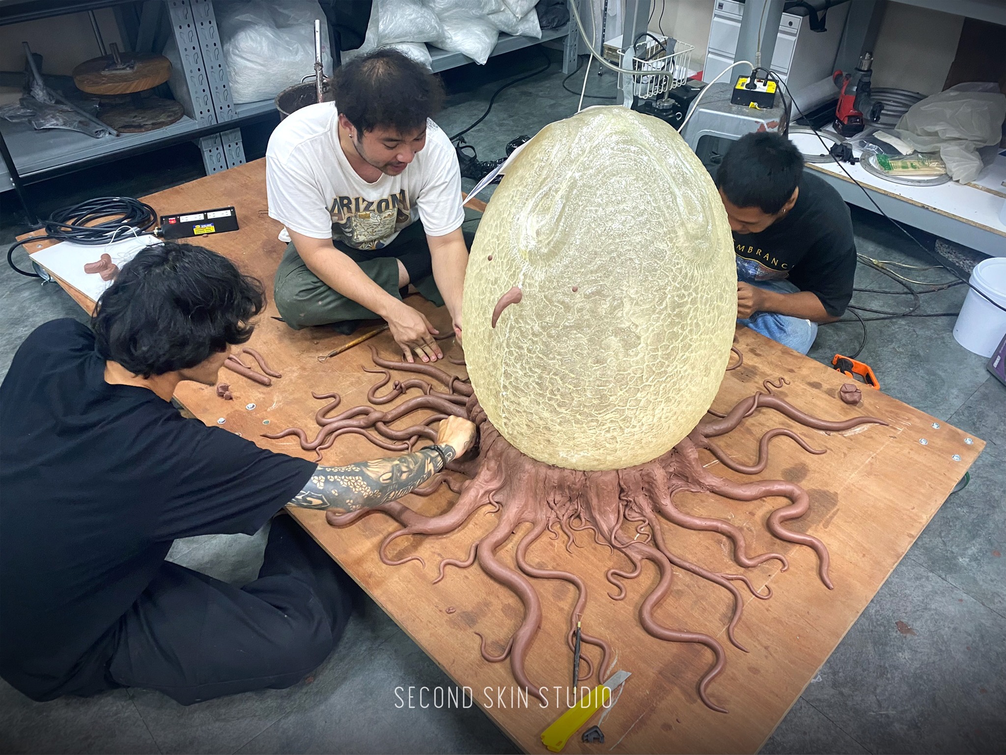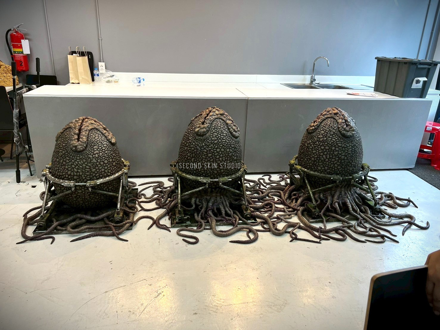 Alien: Earth Second Skin crafted the Xenomorph egg complete with organic root formations, showcasing various stages of growth.